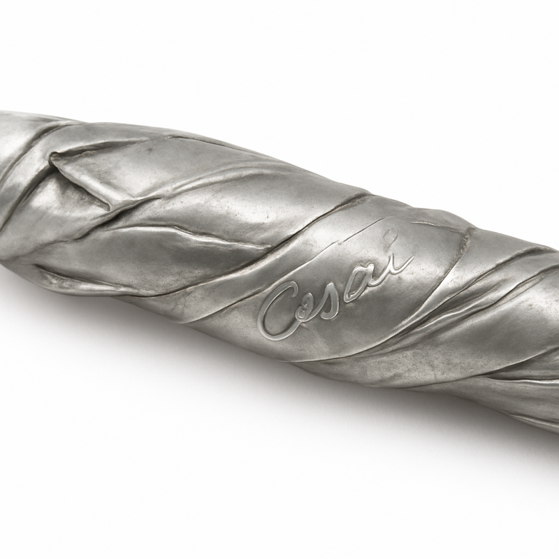 Ce stylo-plume César se distingue par son design sculptural et sa force expressive. Entièrement réalisé en métal massif torsadé, il évoque le geste de l’artiste et la matière en mouvement.