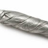 Le capuchon et le corps reprennent le même motif spiralé, dans une finition argentée satinée, subtilement patinée par le temps.