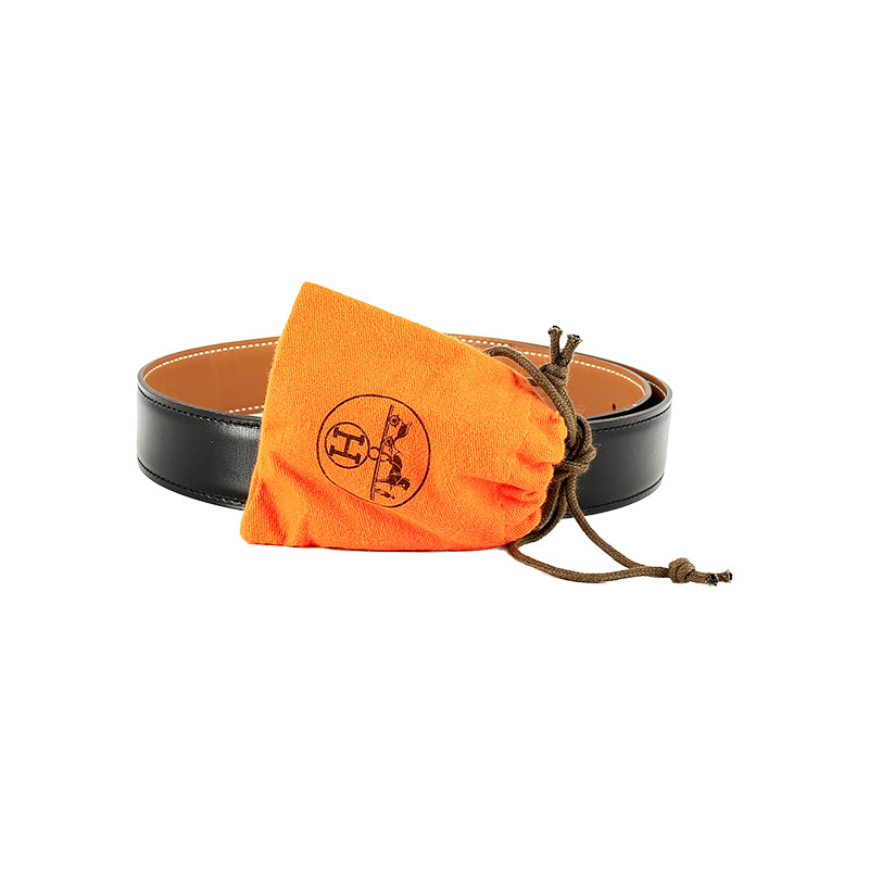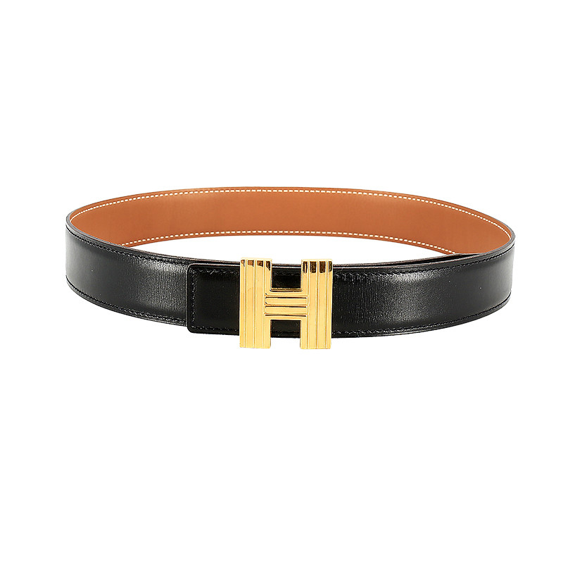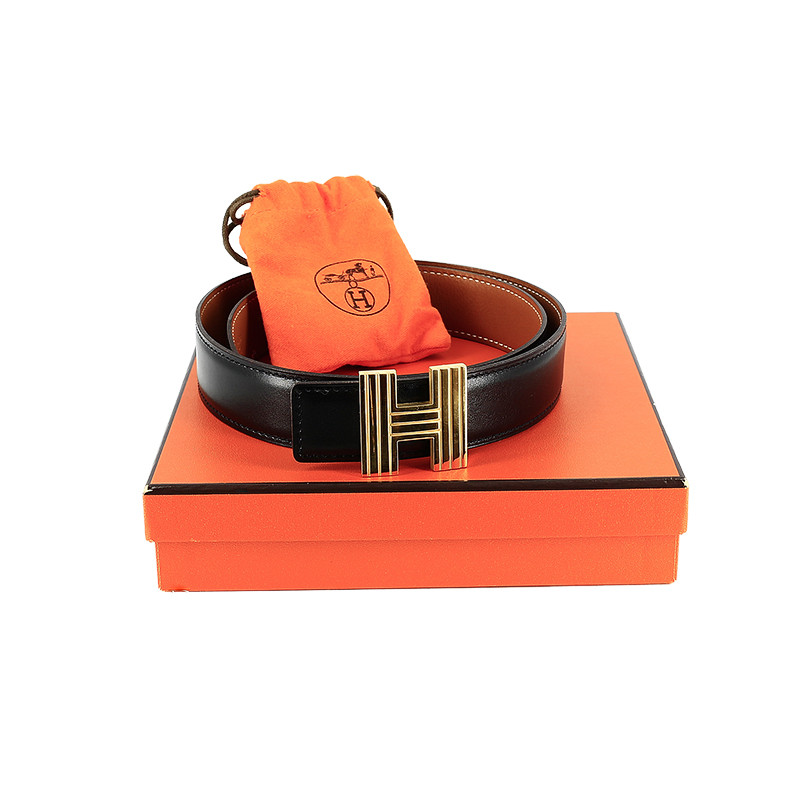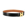 Ceinture Hermès "H" strié et Cuir réversible Noir et Gold