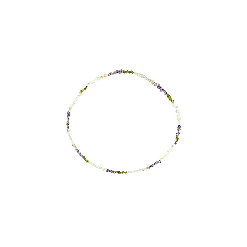 Un sautoir associant améthyste, péridot et quartz n’est pas seulement esthétique : ces trois pierres appartiennent toutes à la grande famille des silicates, mais se forment dans des environnements géologiques très différents. L’améthyste est une variété de quartz colorée par des traces de fer, le péridot provient souvent de roches volcaniques profondes, et le quartz clair est l’un des minéraux les plus répandus sur Terre. Leur réunion dans un même bijou crée ainsi un contraste de couleurs… et d’origines naturelles.
