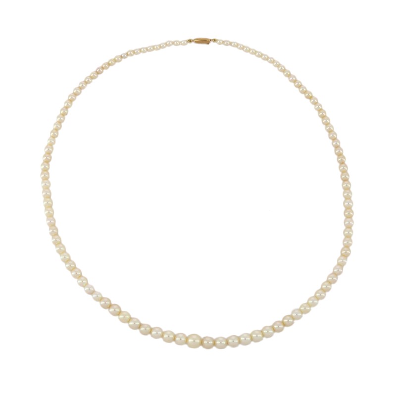 Collier en chute de 103 perles de culture japonaises avec un fermoir olive en or jaune 18k