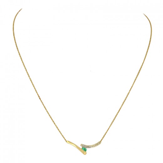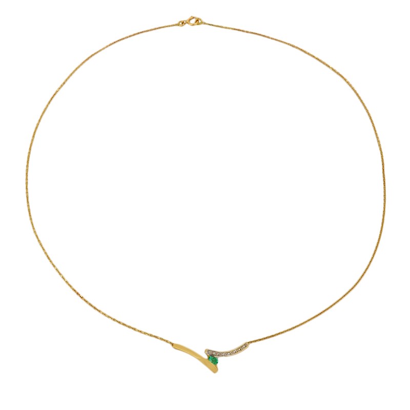 L'éclat du pavage de diamants sur l'or blanc, met en valeur l'émeraude serti au centre du pendentif en or jaune. De part sa finesse, ce bijou ajoutera une touche d'élégance à chacune de vos tenues.