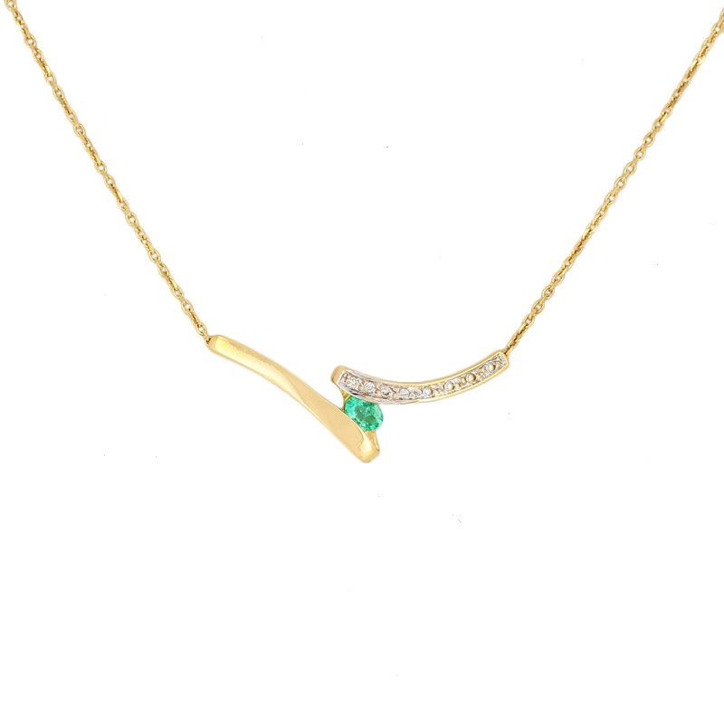 Collier centre moderne en or jaune et blanc 18k, émeraude et diamants