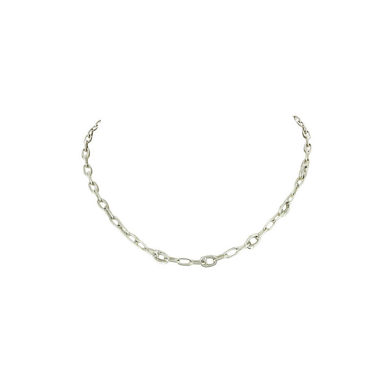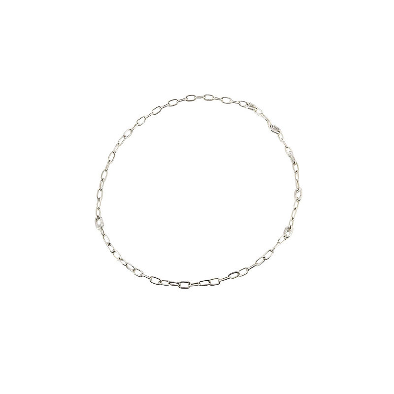 Collier de la collection Essentials de DoDo par Pomellato, réalisé en argent 925. Sa chaîne à maillons ovales présente cinq maillons ouvrants, signature emblématique de la ligne, permettant d’accueillir et de composer librement les charms DoDo. Une pièce au design épuré et contemporain, illustrant avec élégance le savoir-faire de la maison italienne.