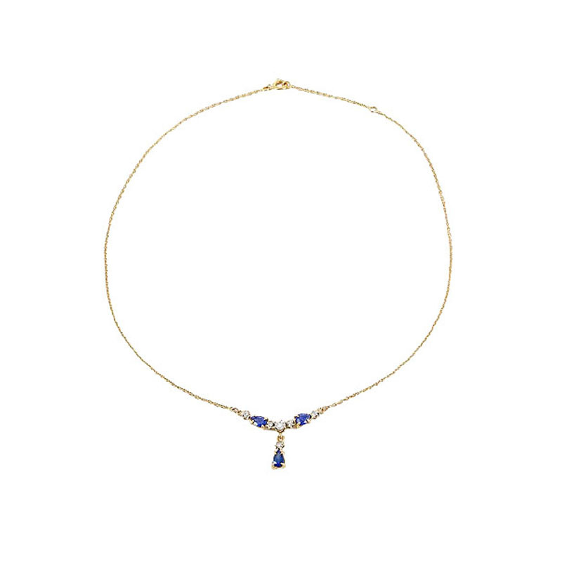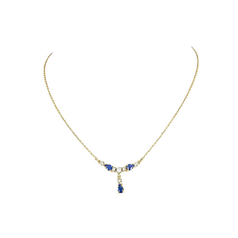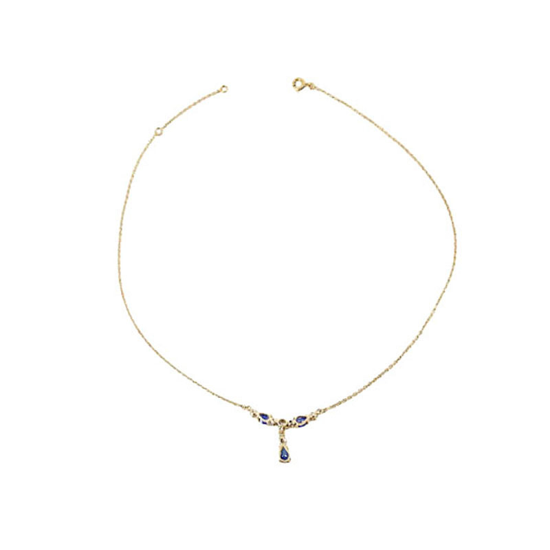 Collier en or jaune 18 carats orné de saphirs et diamants, sublimé par une délicate pampille centrale. Une pièce élégante et lumineuse, au style intemporel.
