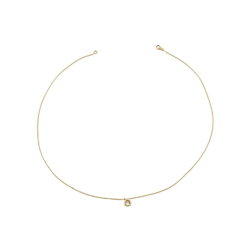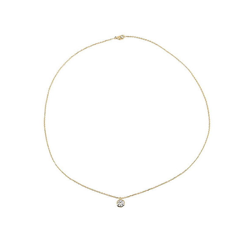 Collier Centre Diamant en Sertis Clos en Or Jaune 18 K