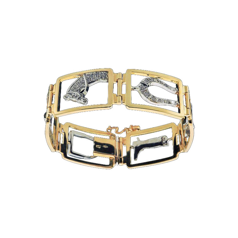 Bracelet moderne deux ors 18k et 6 motifs diamantés sur le thème de l'équitation