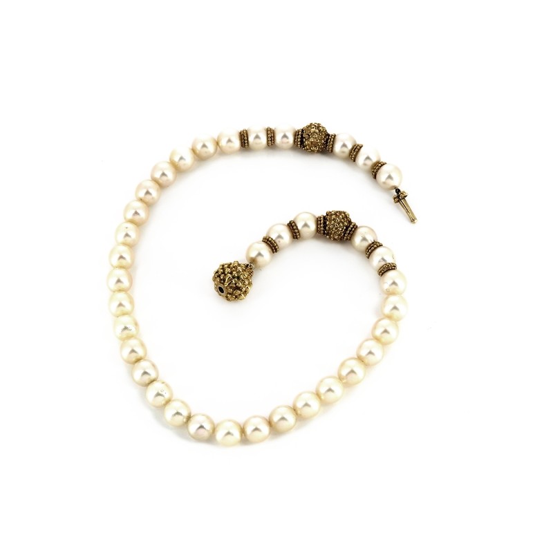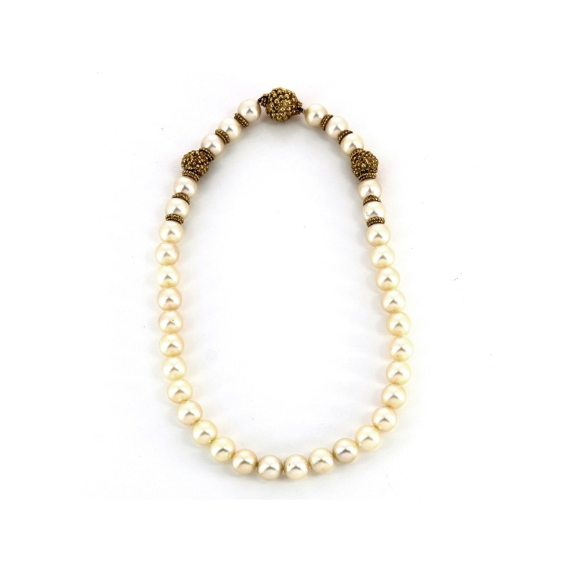 Collier ras de cou 1980' avec perles de culture japonaises et intercalaires en or jaune 18k.