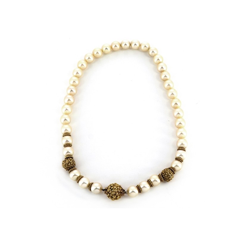 Collier ras de cou avec perles de culture japonaises et intercalaires en or
