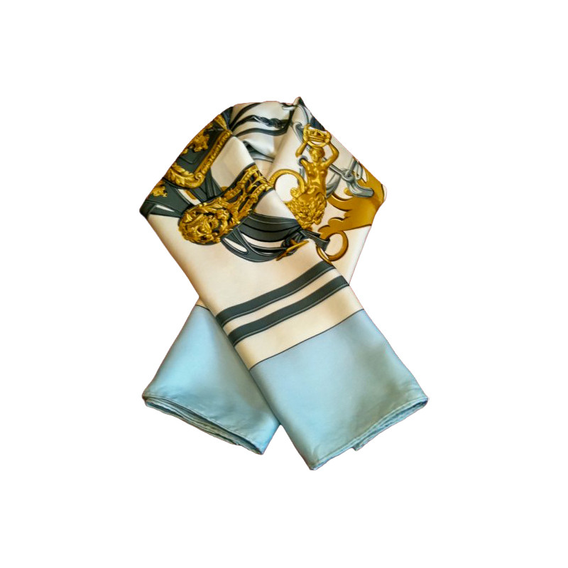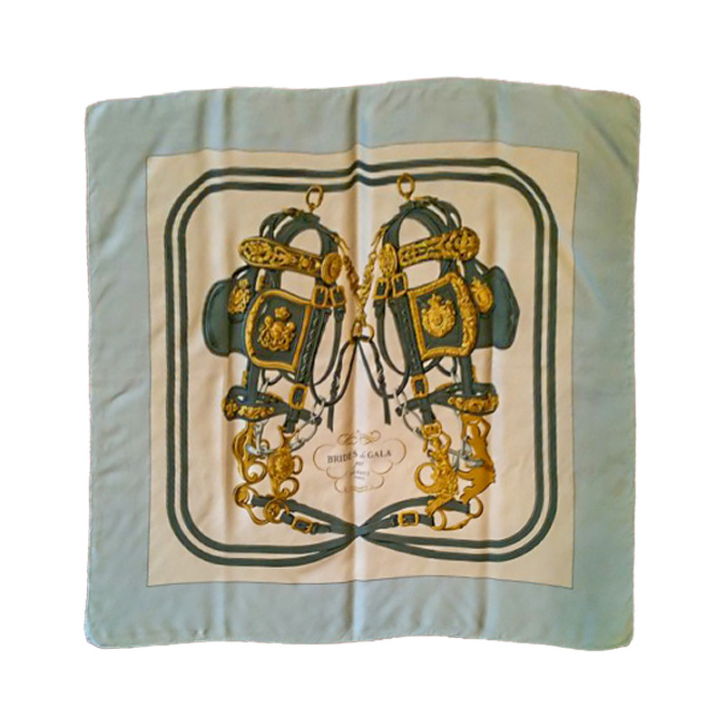 Carré Hermès Brides de Gala en soie bords bleu ciel