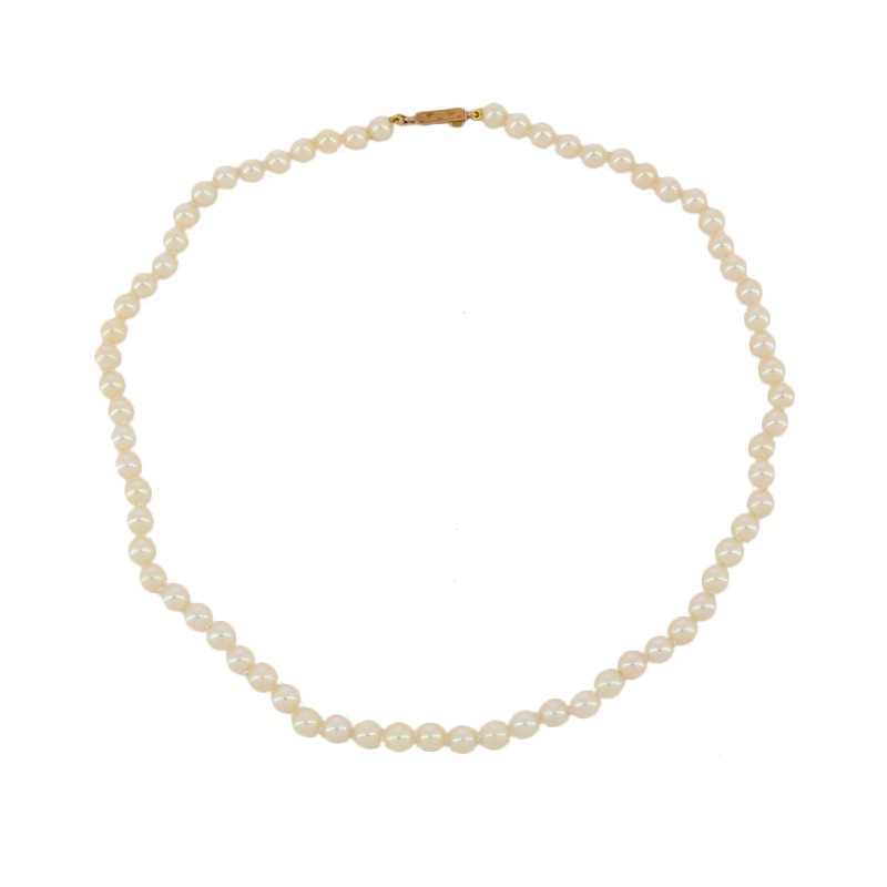 Collier moderne de 68 perles de culture japonaises en petite chute avec un fermoir en or jaune 18k