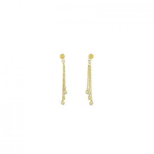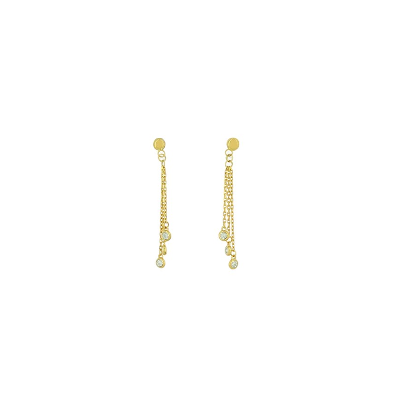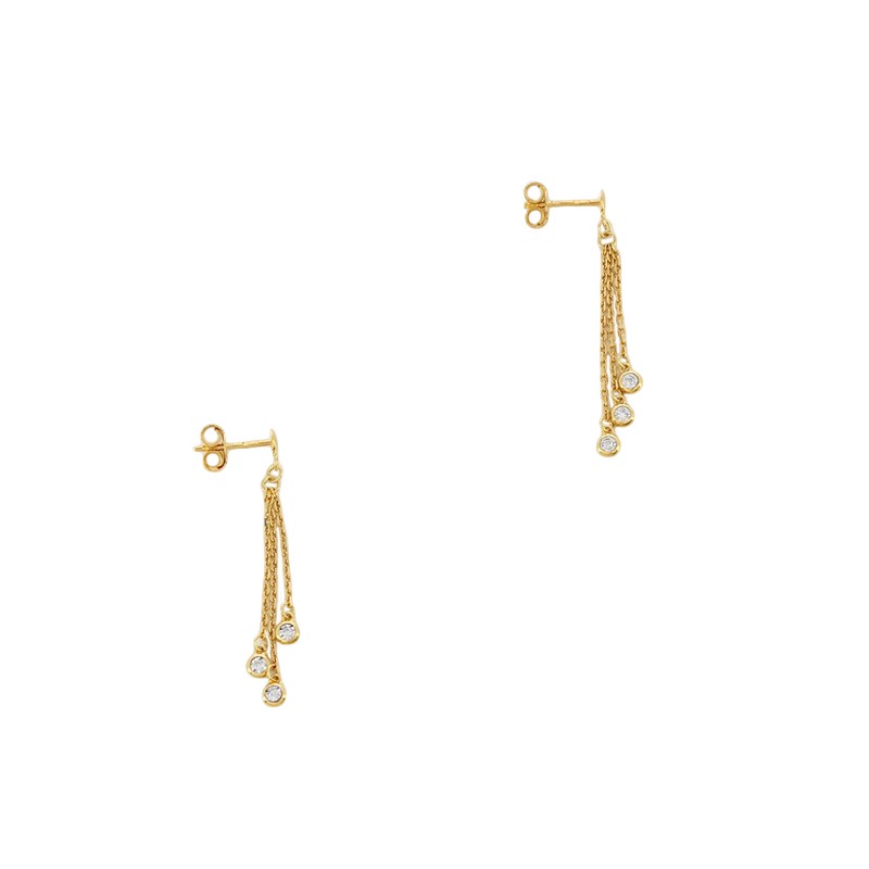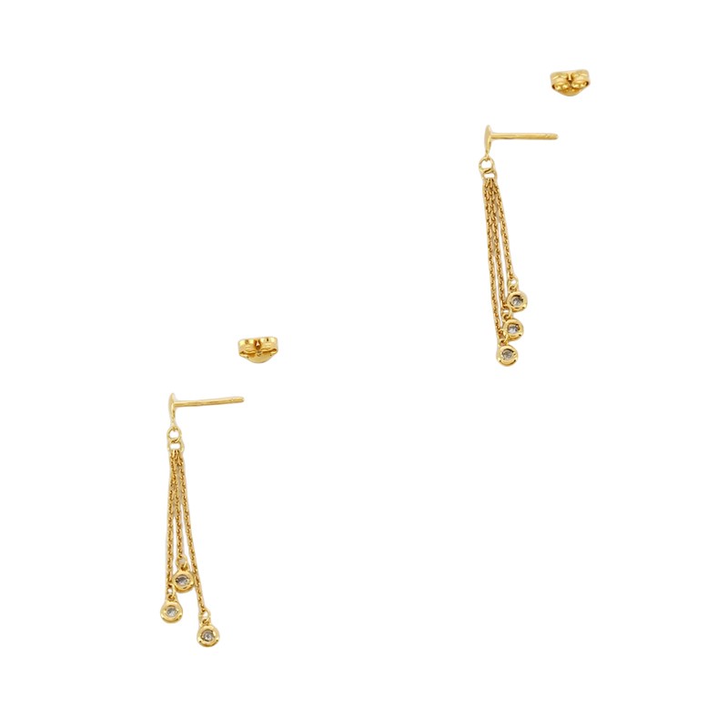 Boucles d’oreilles pendantes en or jaune 18 carats, délicatement composées de trois fines chaînettes