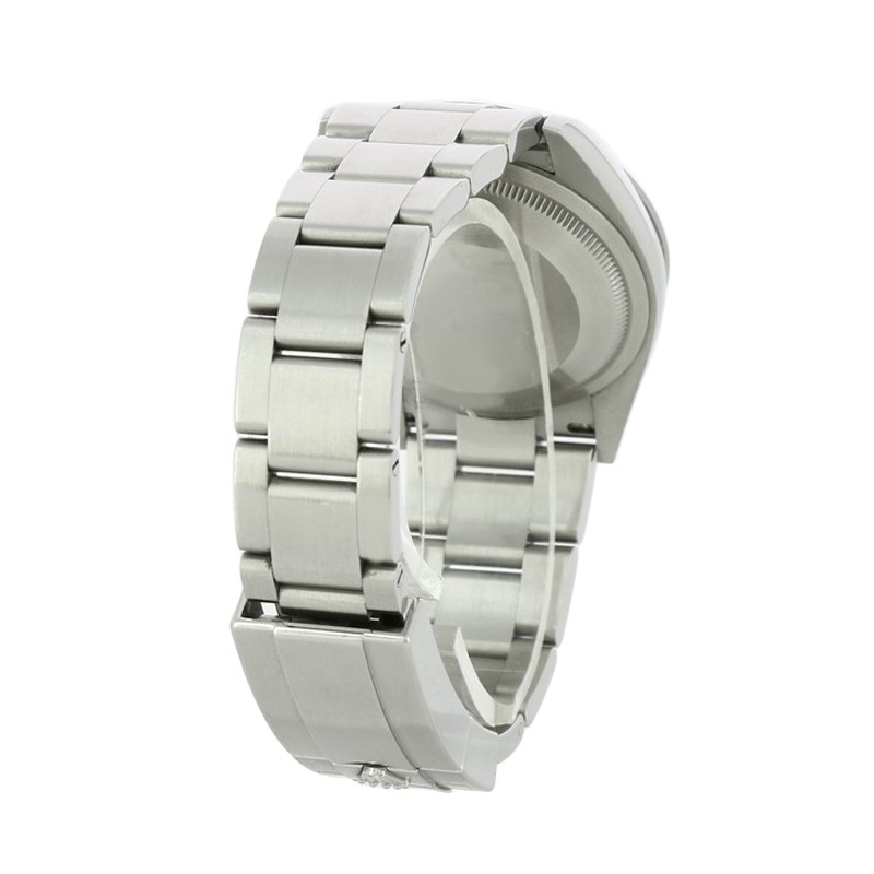 Le boîtier Oystersteel poli et satiné confère robustesse et sobriété, tandis que le bracelet Oyster assure confort et sécurité grâce à sa boucle Oysterlock raffinée.
