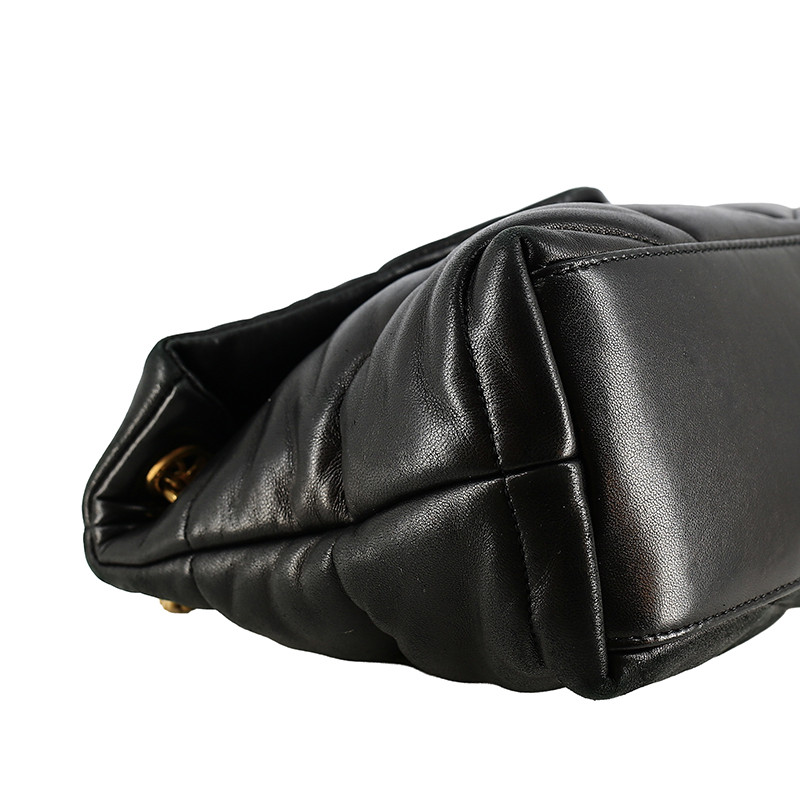 Le sac Loulou Puffer Small de Yves Saint Laurent incarne l’élégance parisienne contemporaine. Réalisé en cuir nappa noir, il se distingue par son matelassage oversize souple et généreux, signature forte de la maison. Son toucher exceptionnellement doux et son aspect légèrement gonflé lui confèrent une allure moderne tout en conservant une sophistication intemporelle.