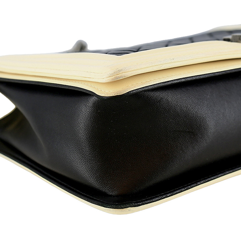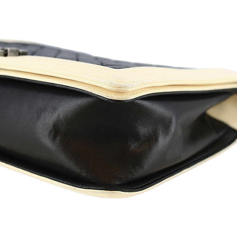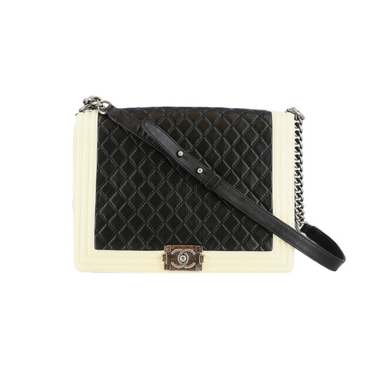 Grand Sac Boy Chanel en Cuir d'Agneau et de Veau noir et blanc